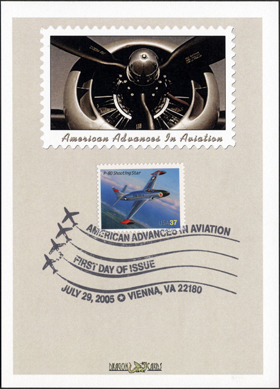 ![]() | ![]() First Day Cover Aviation Dgn 201m $3.00 Sc. 3921 Aviation P-80 single on a 5"x7" Dragon Card, faux stamp design featuring a propeller. Vienna, Va., First Day of Issue hand cancel. Great for an aviation- or airplanes-on-stamps collection! |