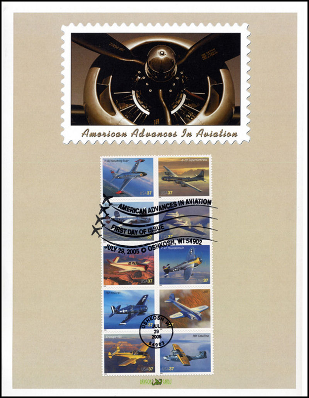 ![]() | ![]() First Day Cover Aviation Dgn 203 $9.00 Sc. 3916-25 Aviation intact block of 10 stamps on a 8½"x11" Dragon Card, featuring a faux stamp with a propeller. Oshkosh, Wis., First Day of Issue hand cancel. Great for an aviation- or airplanes-on-stamps collection! |