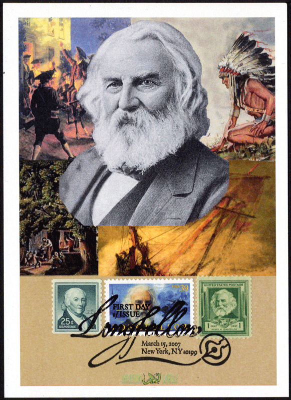 ![]() | ![]() First Day Cover Henry Longfellow Dgn 254c $3.50 Sc. 4124 Henry Longfellow on a 5"x7" Dragon Card with a portrait and illustrations of four of his most famous poems: "Paul Revere," "Hiawatha," "Blacksmith" and "Hesperus." With Sc. 864 Longfellow and Sc. 1059A Paul Revere coil. First Day of Issue pictorial hand cancel. Great for a poets- or literature-on-stamps collection! |