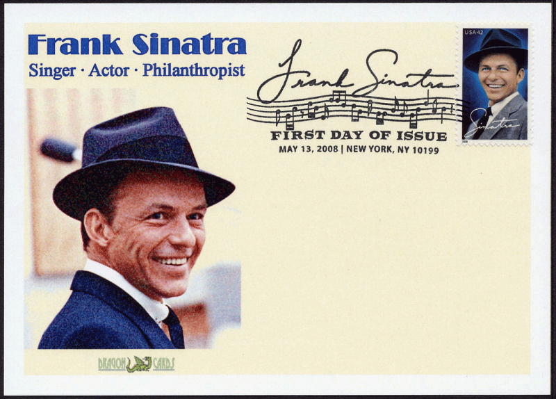 Frank Sinatra on a 5"x7" Dragon Card with a portrait of Sinatra at
