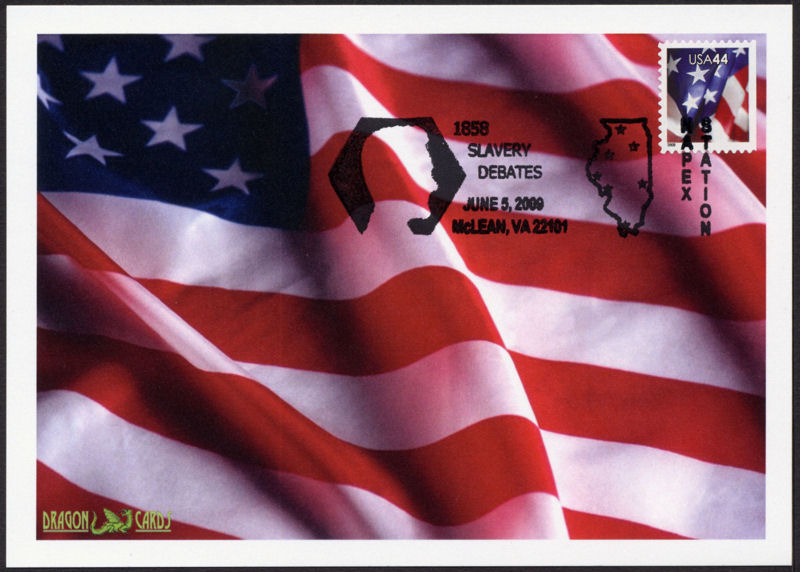 Sc. TBA Folded Flag on a booklet single on a 5"x7" Dragon Card featuring a photo of a rippling flag. NAPEX show cancel, where the stamp was issued. Great for a flags- or Americana-on-stamps collection!
