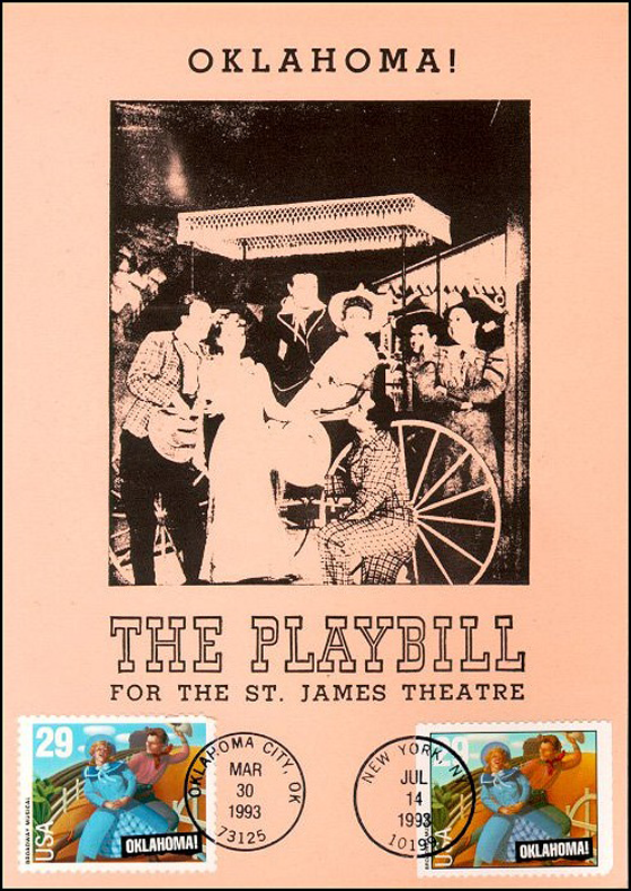 2722 Oklahoma! on a 5"x7" black on salmon Dragon Card reproducing the