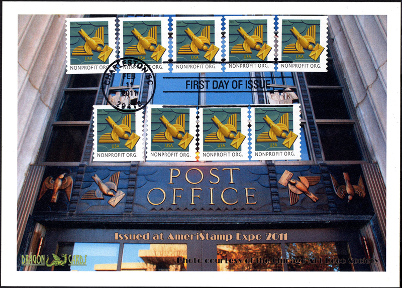 by the Chicago Art Deco Society. First Day of Issue hand cancel. Great