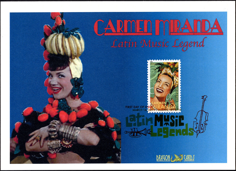 Sc. 4498 Latin Music - Miranda on a 5"x7" Dragon Card with a picture of Miranda in "The Gang's All Here" (1943). Digital color postmark. Great for a music- or Hispanic culture-on-stamps collection! Back To