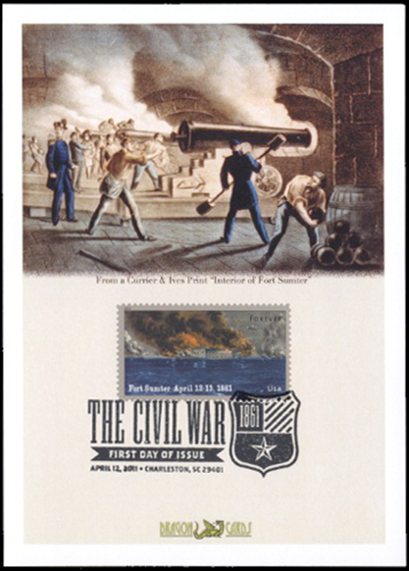 Sc. 4522 Civil War - Fort Sumter on a 5”x7” Dragon Card reproducing a Currier & Ives print. First Day of Issue postmark. Great for a Civil War- or military-on-stamps collection!