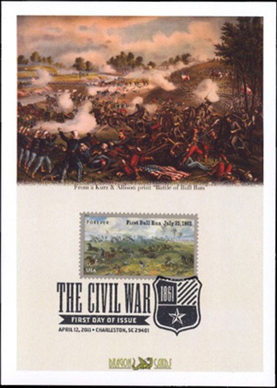 Sc. 4523 Civil War - Bull Run on a 5”x7” Dragon Card reproducing a Kurz & Allison print. First Day of Issue postmark. Great for a Civil War- or military-on-stamps collection!