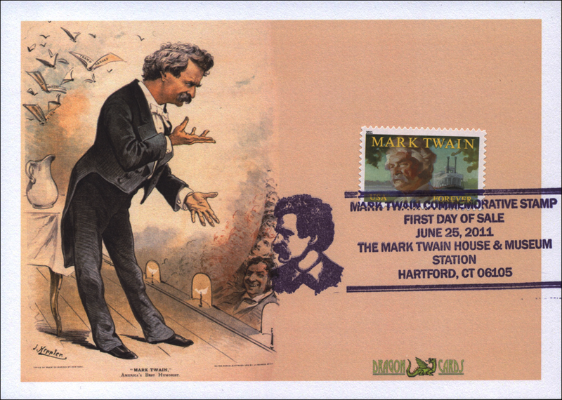 4545 Mark Twain on a 5”x7” Dragon Card based on an 1885 illustration