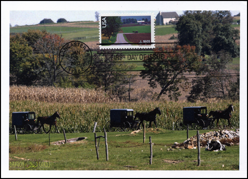 C150 Lancaster County on a 5”x7” Dragon Card showing Amish buggies