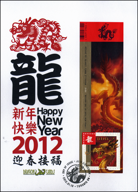 lettering for the Year of the Dragon. Canada’s vertical souvenir sheet