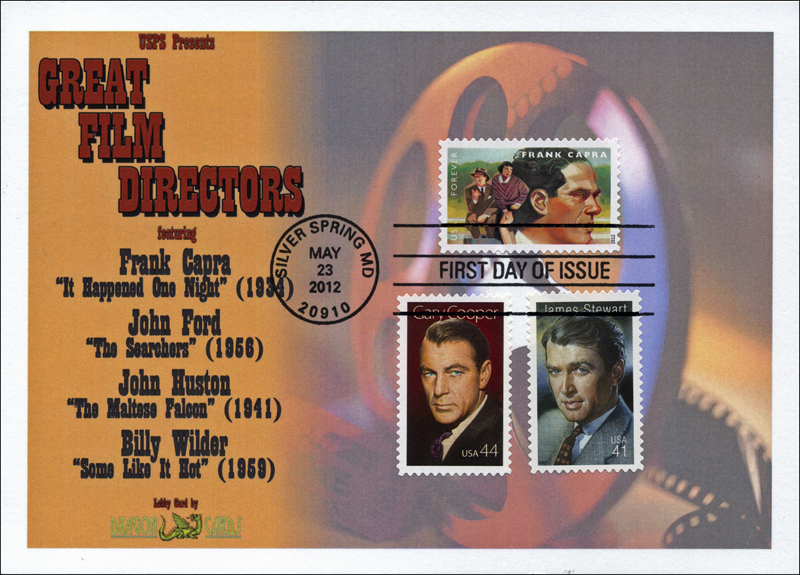 of film in the background. The Capra stamp and stamps for the stars of