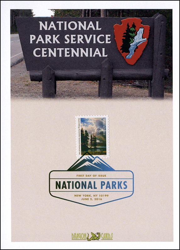 ![]() First Day Cover National Parks-Marsh Dgn 587mbrd $1.00 Sc. 5080c National Parks-Marsh on a 5"x7" Dragon Card showing a sign similar to those that might be found at the entrance to a National Park. The sign reads "National Park Service Centennial." The Marsh-Billings-Rockefeller single is affixed by the Digital Color Postmark. Great for a parks- or conservation-on-stamps collection! |