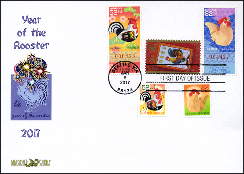 Year of the Rooster on a 5"x7" Dragon Card showing a Year of the