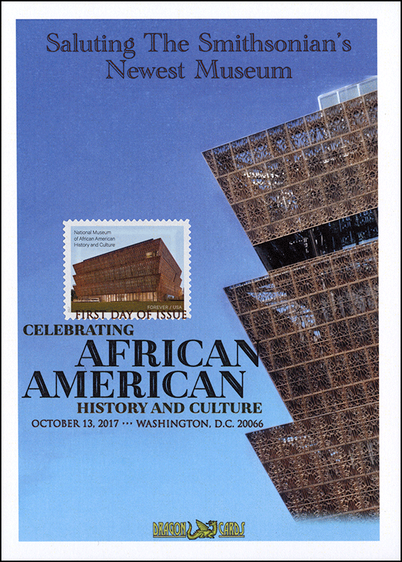 5251 African American Museum on a 5"x7" Dragon Card featuring a modified photograph of the edge of the Museum building. Digital Color Postmark. Great for a Black History-on-stamps collection! |