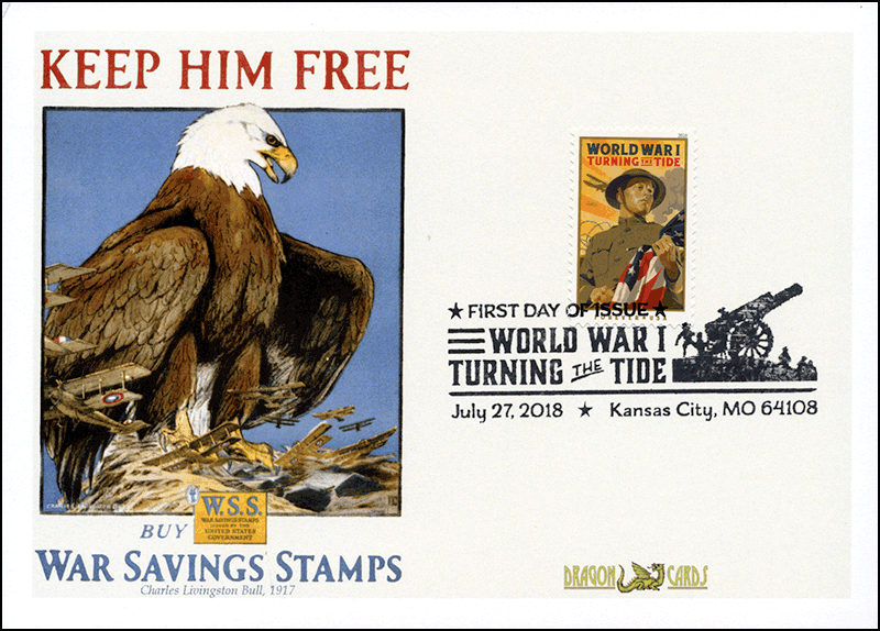 Bull's 1917 "Keep Him Free" Eagle poster for War Savings Stamps.