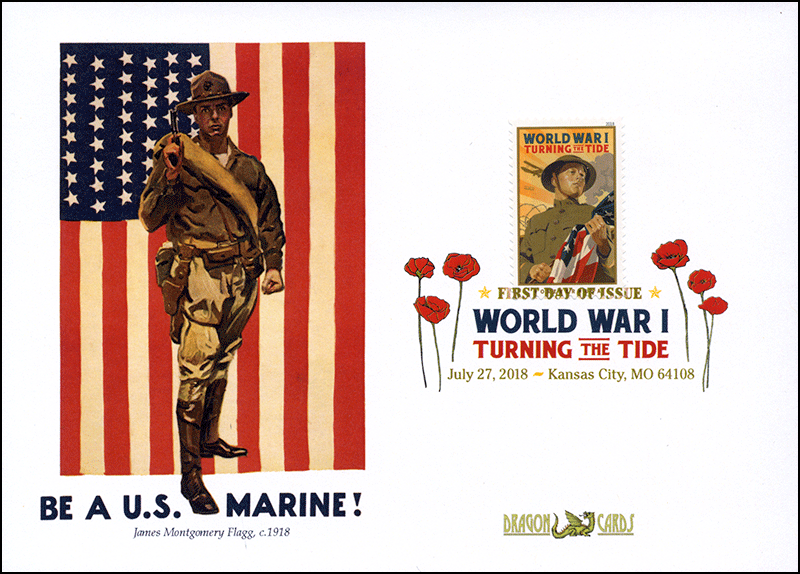 Sc. TBA World War I on a 5"x7" Dragon Card based on James Montgomery Flagg's 1918 Marines recruitment poster. Digital Color Postmark. Great for a military- or patriotism-on-stamps collection!