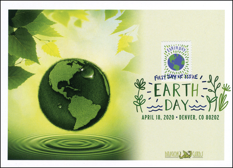 Sc. TBA Earth Day on a 5"x7" Dragon Card featuring art of the Earth over a pool of water. Digital Color Postmark. Great for an environment-on-stamps collection!