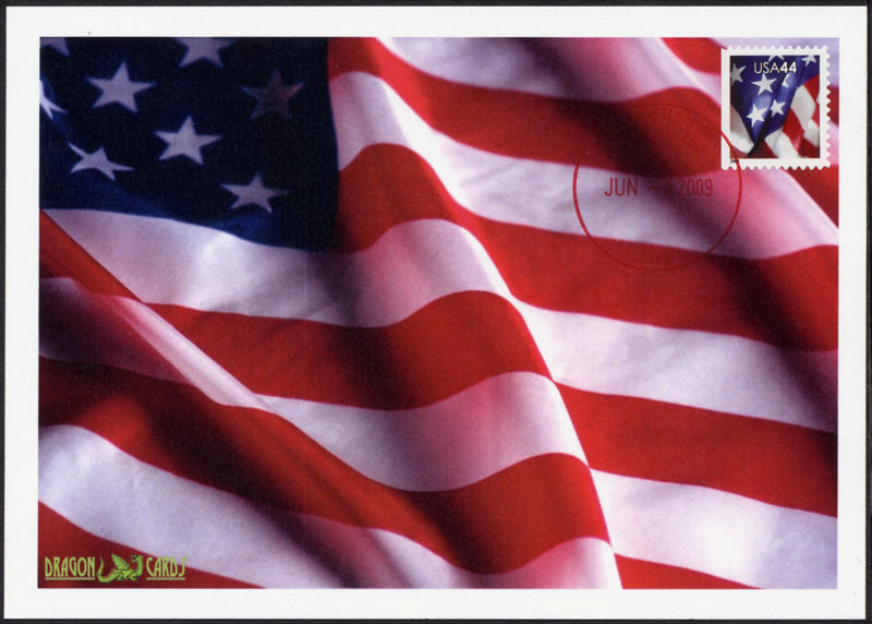 Dgn 569: Sc. TBA U.S. Flag 5x7 Dragon Card reproducing a photograph of a flag. The stamp is tied by the AmeriStamp Expo (Atlanta) show pictorial hand cancel. The stamp was issued on the same day with a Washington DC postmark larger illustration (new window)...$2.50 | |