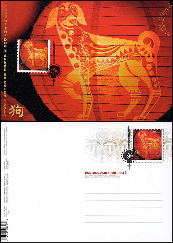 ![]() | ![]() First Day Cover Year of the Dog max18dog2 $10.00 Sc. TBA Year of the Dog on a Canada Post picture postcard reproducing the international-rate stamp design on the face and as the indicia on the reverse. The international-rate stamp is applied to the face, and both it and the indicia are tied by first-day postmarks. Great for a lunar new year-, holidays-, or dogs-on-stamps collection! |